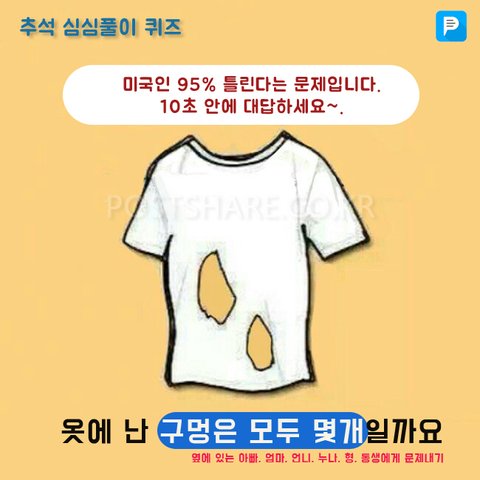 미국인 95% 틀리는 문제 추석 심심풀이 퀴즈