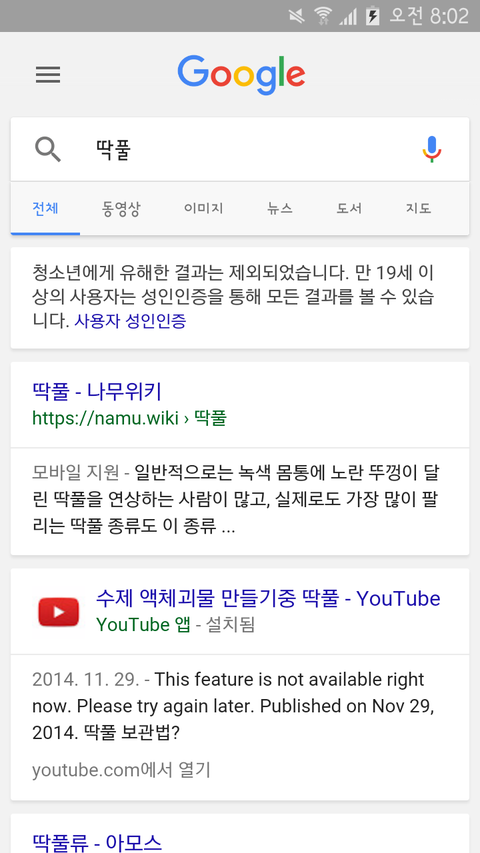 구글은 검색하고나서 그 중에 음란한 내용이 포함된 게시물이 있으면 필터링해서 자동적으로 저게 뜨게 되있어요...