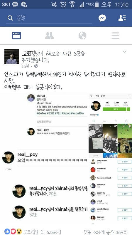 팔로우도 했네 나도 찬열이가 알아줬으면좋겠다.. 스밍은컴