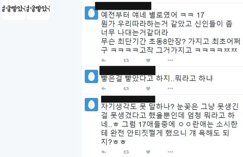 엑소데뷔전부터 17명으로 계획세워놔서 이름도 세븐틴인건데 어찌저찌해서 13명된거라고알려줘도 듣지도않고 따라했대ㅋㅋㅋㅋ그리고 얼굴은 대꾸할 가치도 없곸ㅋㅋㅋㅋ가수한테 저런직멘보내는 꼬라지봐;;