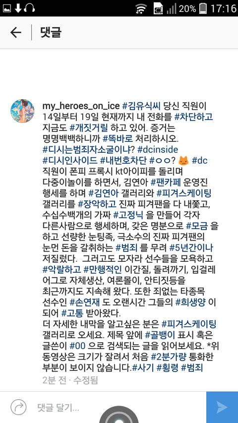 dc직원이 수백개의아이피를 돌리며 다중이짓을 하고 김연아 팬카페 운영진 행세를 하면서 각종 범죄를 저지름.