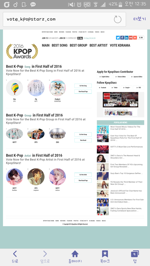 베스트송, 아티스트, 그룹상 투표야 10일 남았다!! 2위인게 2갠데 얼마 차이안나 로그인 필요없으니까 투표 좀 하자 난 투표했으니까 굿빰 방나잇☆