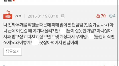 근데 지금 엑소 관련 짹 병크 보면 저런 말 했던 사람들 다 어디 가고 병크 낸 홈마만 욕하는 게 아니라 엑소엘 전체는 물론 엑소까지 욕하고 있음 저 댓글 캡쳐한 나로써는 이 상황이 그냥 웃길뿐