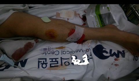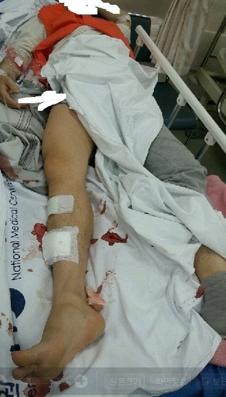 찢어지는 상해를 입었습니다. 다시 큰 대학병원으로 옮겨서 대퇴골 골절 수술을 했습니다.