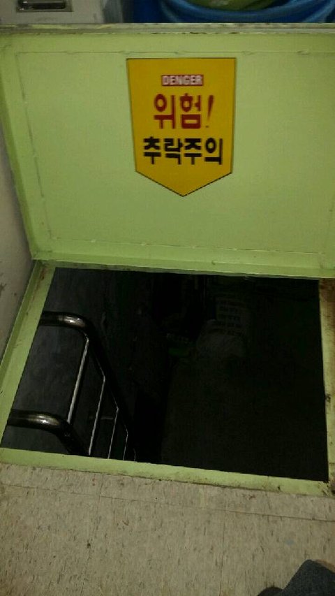 수건을 놓으러 창고 들어가는순간 제가 맨홀에 빠졌습니다. 높이는 2m이상되었고요