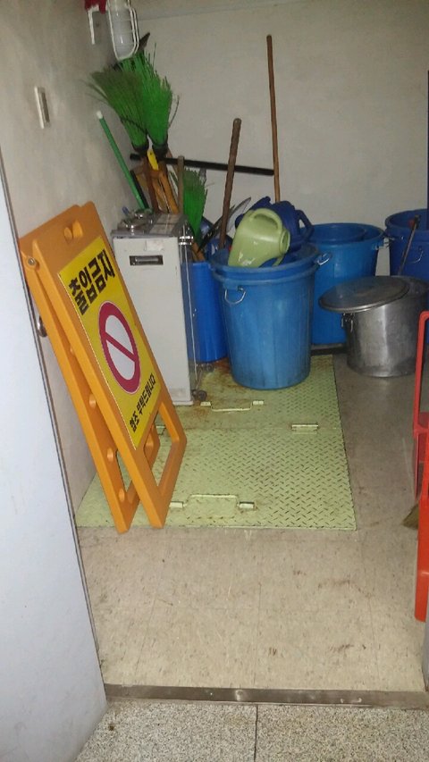 항상 근무시간에는 저 창고문이 열려져있었습니다. 오히려 저렇게 붙힌게 훨씬더 부자연스럽죠