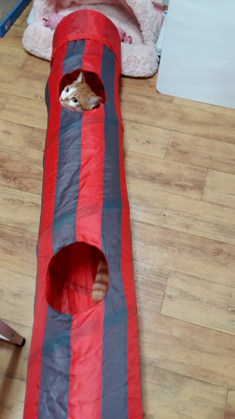도칠이 혼자서 잘 좀 놀아보라고 부스럭 소리나는 터널을 구입함.