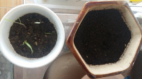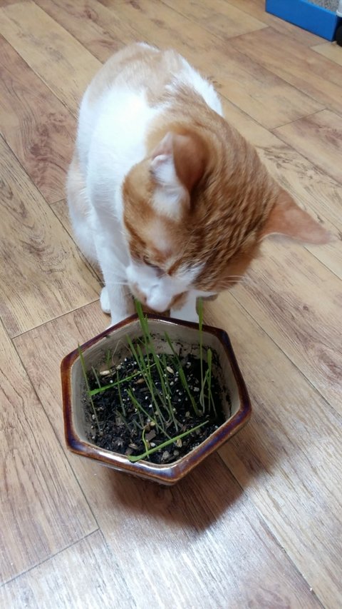 도칠이가 캣그라스? 를 좋아하기에 화분 2개에 씨앗을 심었음