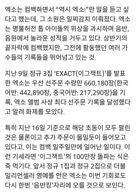 트리플 밀리언셀러 목전..엑소, 그 이상의 엑소