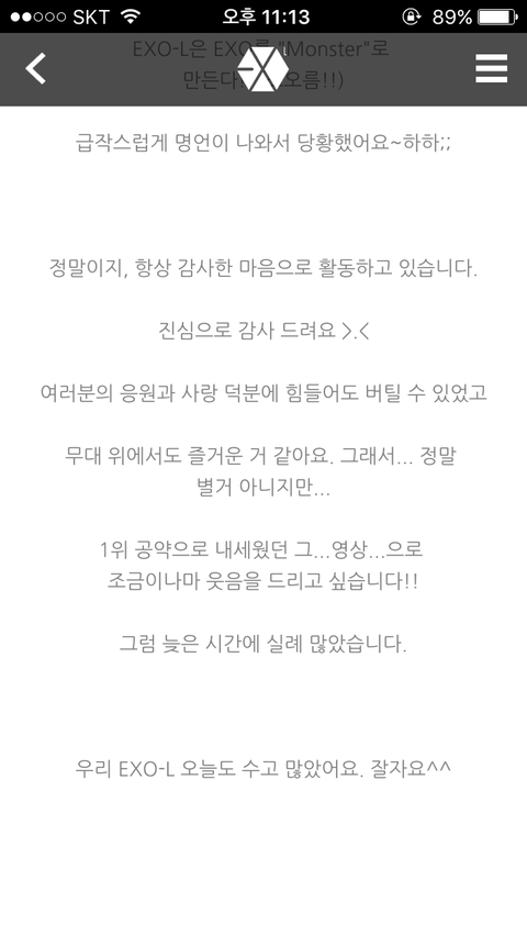 마음도 고운 내 가수... 진짜 귀엽고 사랑스럽고 고맙고.. 진짜 벅차.. 예쁘게 자라서 엑소 시우민이 되어줘서 고마워♡