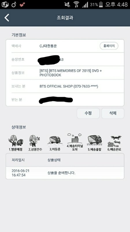 메일로 운송장 번호 받았는데 아직 안 출발한 건가,,,? ㅠㅠ 넘나 기대됨