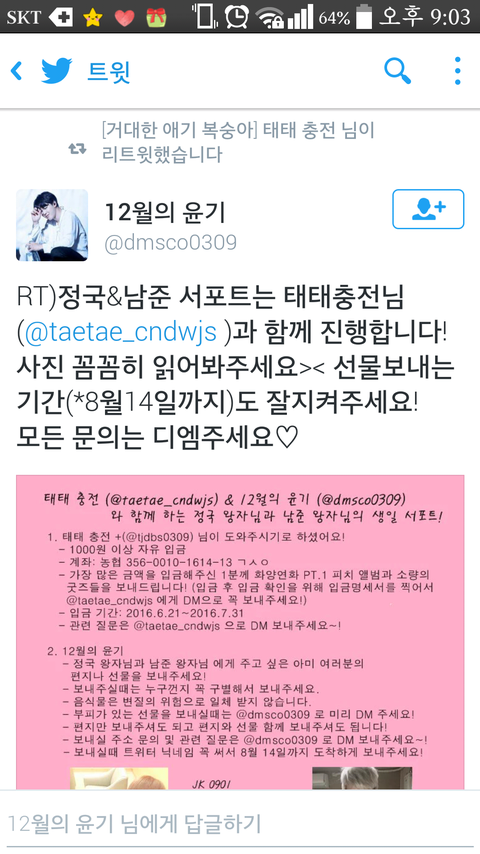 글삭되서 다시 쓰는 정국이 남준이 서포트!