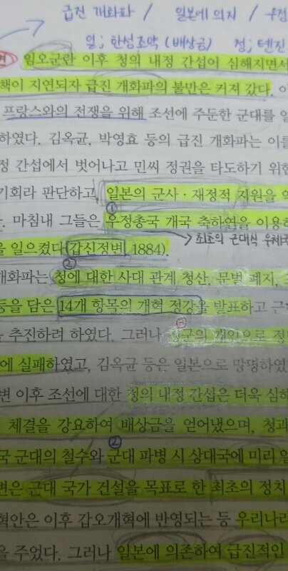 이런식으로 핵심단어 밑줄치고 교과서 위쪽에 키워드도 써놨어