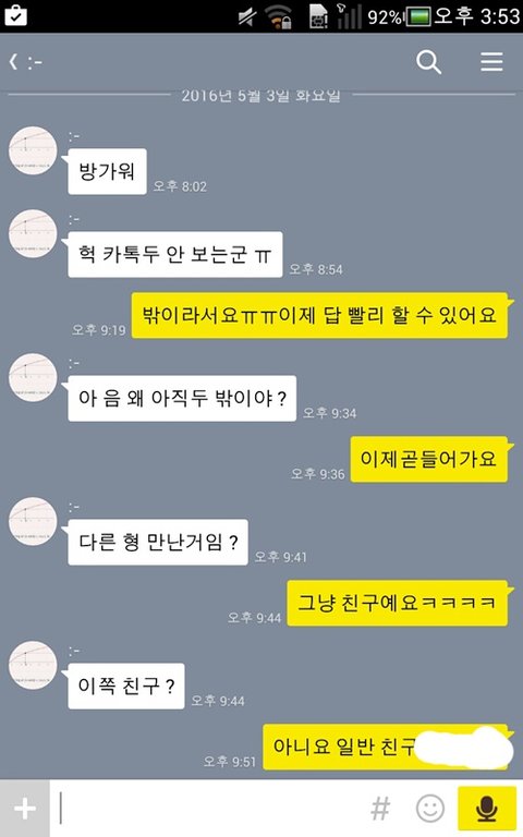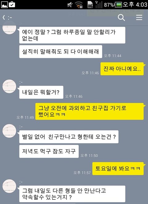 여기서부터 동생이 씹었는지 대화가 없네요..