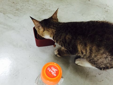 오늘 직원이 사료를 가져왔는데 배고팠는지 폭풍흡입중 ㅠㅠ