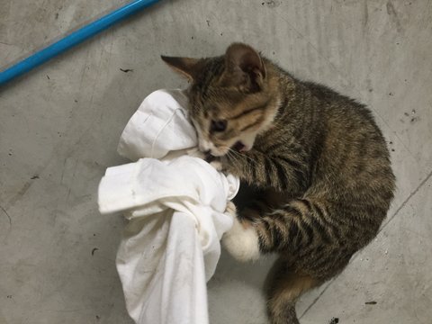 회사 창고에서 비오는날 데려온 길냥이 임시보호중이에요.