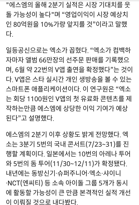 에스엠의 2분기, 엑소가 먹여 살린다