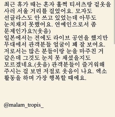 난 이런 인터뷰를 볼 때마다 경수랑 실제로 차분히 대화하면 어떤 느낌일지 궁금해진다.