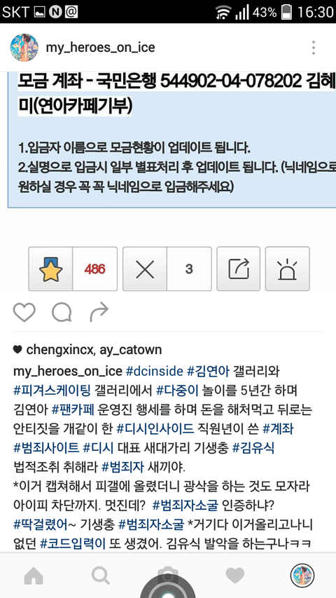 dc직원 5년간 모금사기및 횡령, 김연아팬카페 운영진 행세