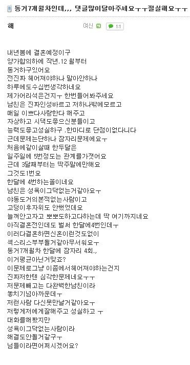 동거 7개월차 여성의 고민