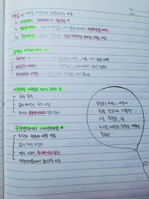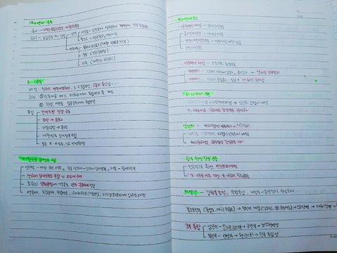 나 처음 공부법은 아무노트에다가 그냥 정리없이 적으면서 공부했는데 이번 기말고사에서 공부방법바꿨어!! 중1때사고 안쓴 공책ㅋㅋㅋㅋ에다가 순서대로 적어가면서 정리했는데 좋은거같아!!시험 전에 볼수도있구!!