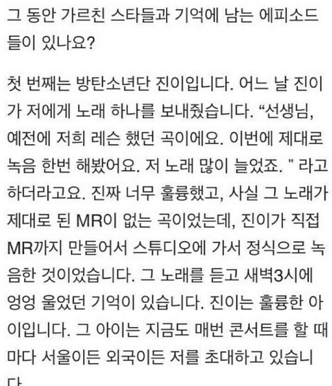 보컬트레이너 김1성은 분께서 석진이 언급하심!