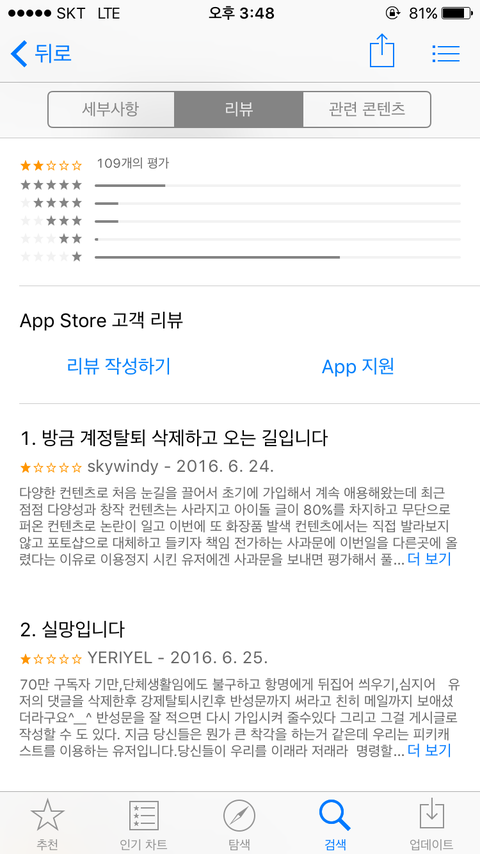 이건 앱스토어 리뷰상황 ㅎㅎ 다들 별점으로 보여주자 ㅋㅋㅋㅋㅋㅋㅋ
