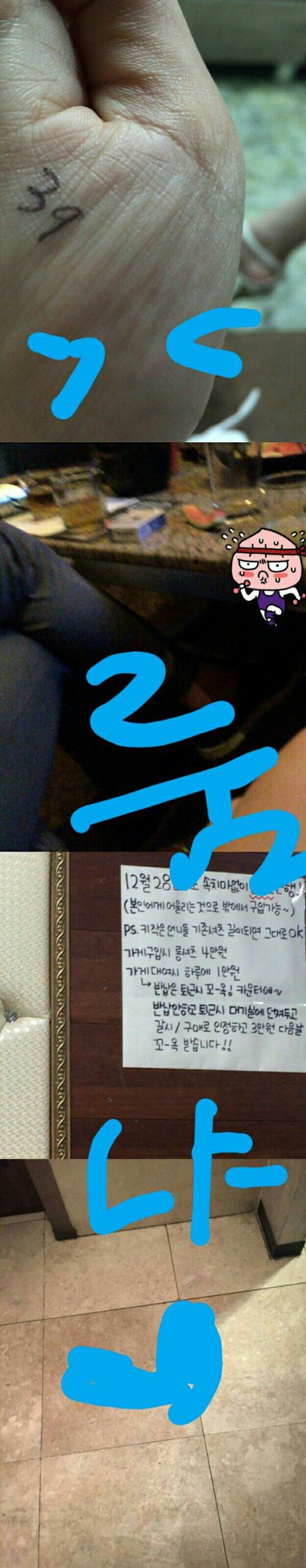 이건 손 인증이랍시고 나중에 엑소 찬열 룸왔다고 루머 퍼뜨릴 증거