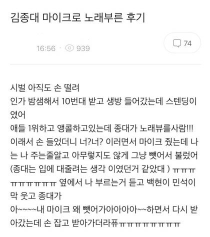 종대가 팬한테 마이크 줬대