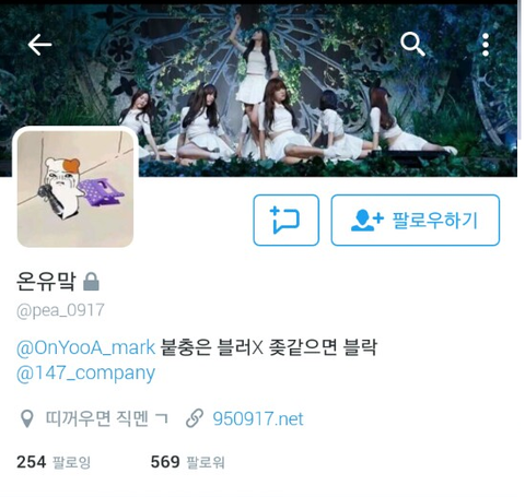 그리고 문제가 된 오마이걸 홈마. 팔로워는 본계는 1k. 이도 적은 숫자는 아님.