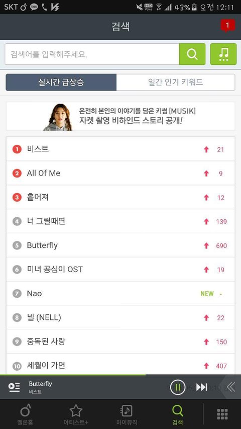 인터넷악플러들이뭐 비스트한물갔다 어쩐다 그러는데 역시 8년차는 남다른듯ㅋㅋㅋ남들이뭐라하던 1위.....