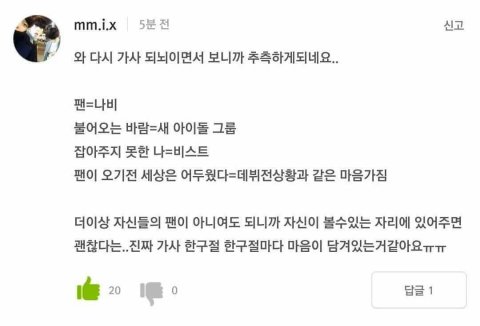 뮤비 마지막즈음에 이기광이 나비를 손으로 감싸안는거로 보아 이제 잡아주겠다는뜻....인가유ㅎㅎㅎ