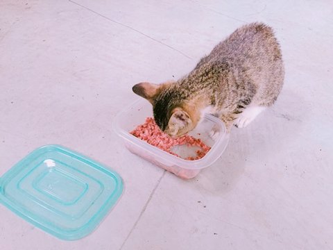 마트에 파는 자묘용 참치를 잘게 부셔 주었더니 엄청 잘먹었어요! 뿌듯뿌듯