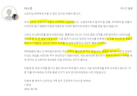 이런 분들만 계시면 강아지 맡기고 세계여행도 다녀오겠어요...
