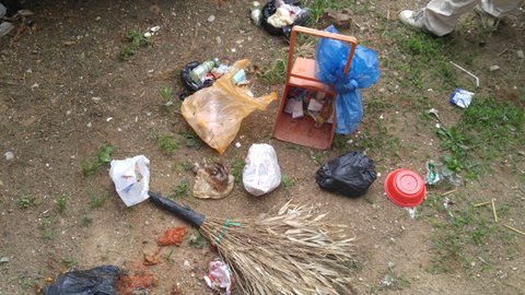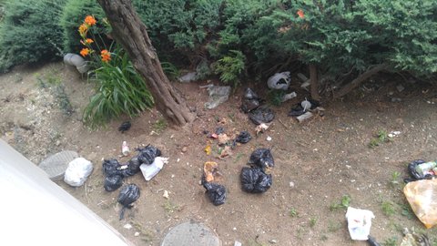 치킨, 족발, 햄버거, 음료수, 온갖 음식물 쓰레기에.. 이미 썩을대로 썩어서 냄새가 고약하고 바퀴벌레도 엄지손가락만 한 것이 기어다니고 날아다녀요.... 하.....
