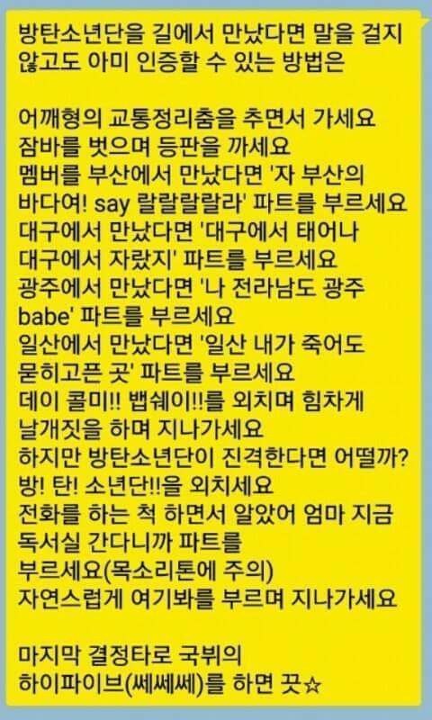 길에서 방탄을 만나면 피해주지않고 아미인거 티내는법