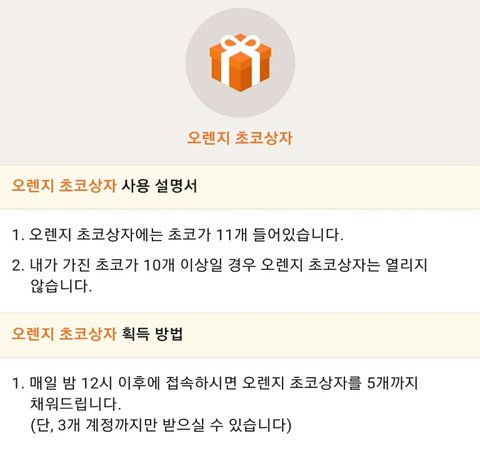 만약 초코가 없으면 무료로 뭐 충전 가능한데 사진처럼 그 시간이후에 들어오면 공짜로 줘 잘 읽어봐