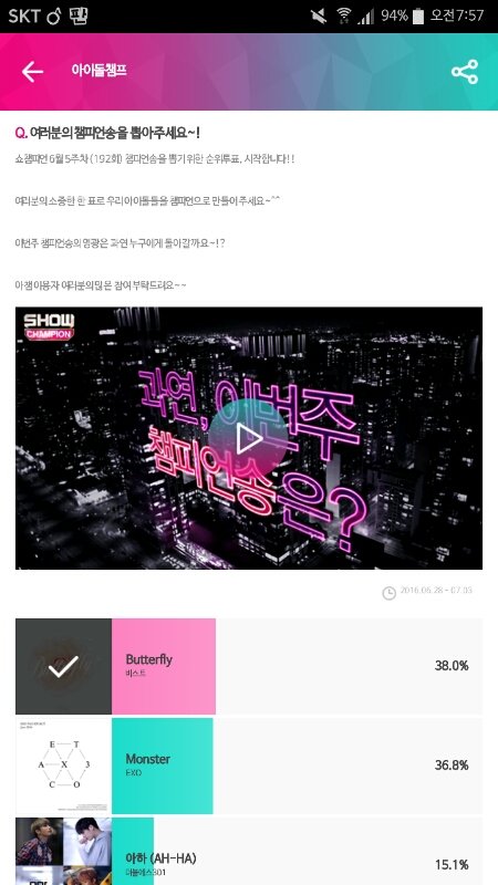 스밍도 하고있고 투표도했어요!! 7월4일 기다리고잇어용 이번앨범 대박이라는 느낌이....