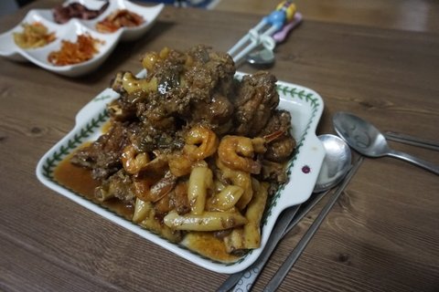 새우넣고, 떡넣고 등갈비찜.