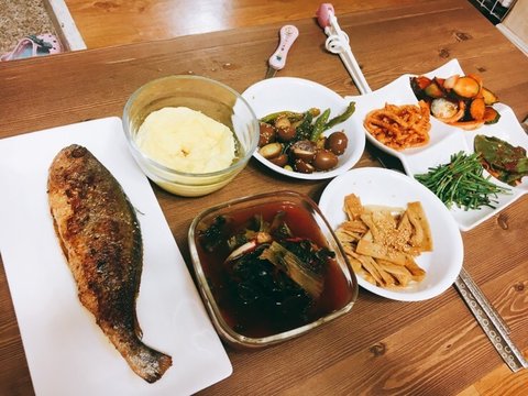 저흰 식탁말고, 밥상에 앉아서 밥을 먹는데