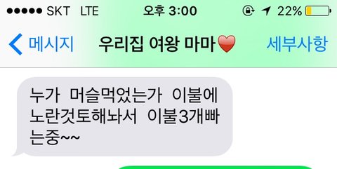 제가 일하고 있는데 어머니께서 문자가 왔습니다.
