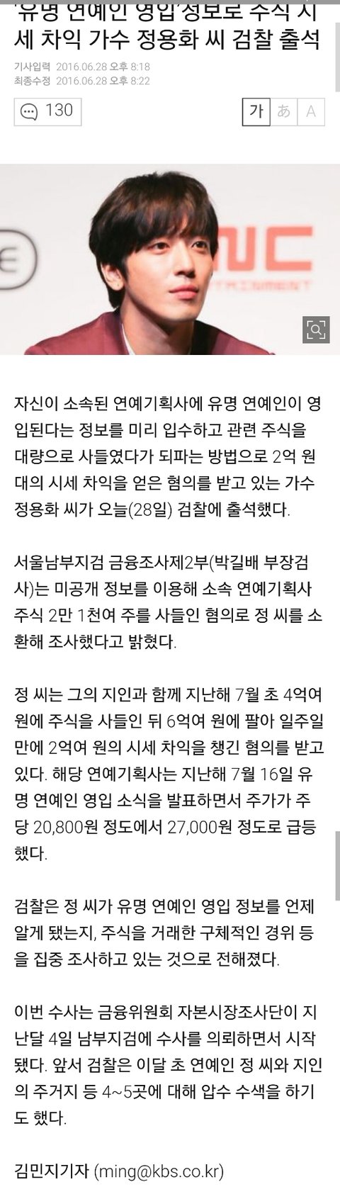 어차피 혐의 있더라도 물증 수집하기 어려우니 정용화랑 회사랑 짜고 '저희 그냥 우연히 한거에요~'하면 사건 종결날듯. ㅉㄷ 노답이다 얘 이미지 이제 어떡하냐?