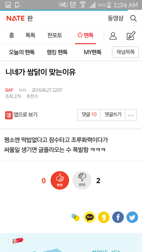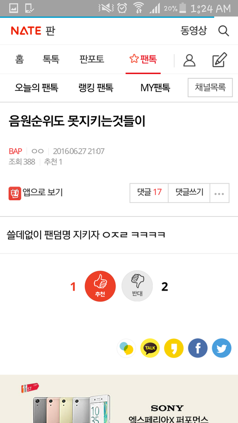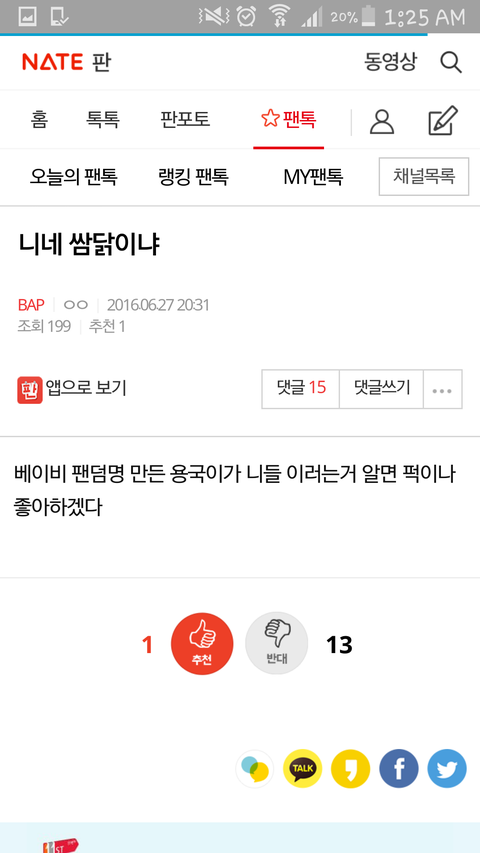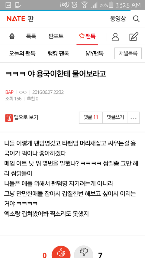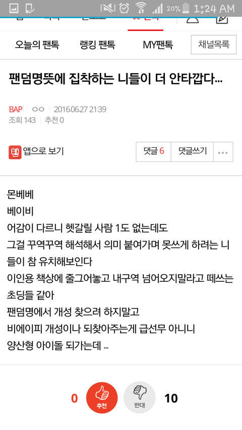 지금도 꾸준히 댓글반응 웃기다는듯 베이비팬톡에 들어와 글올리고있고요.