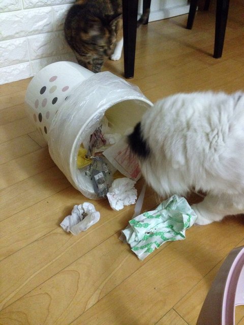 쓰레기통을 요즘 자주 엎어서 혼냈더니 안 도망가고 반성하는 듯이 얌전히 고개 숙이고 듣더라구요 너무 웃겨서 혼내고 안아주려니 삐져서 안 오고ㅋㅋㅋ