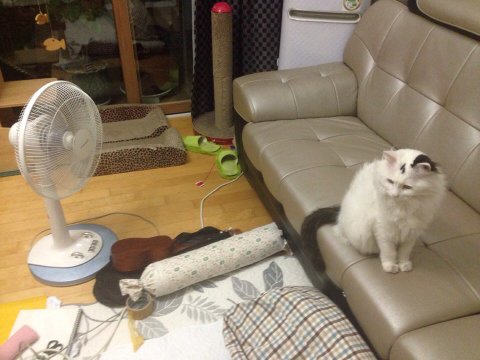 선풍기 틀면 바람 오는 곳에 먼저 자리 잡고 앉고요