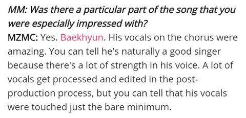 160628 "Artificial Love" 작곡가 MZMC 인터뷰중 백현