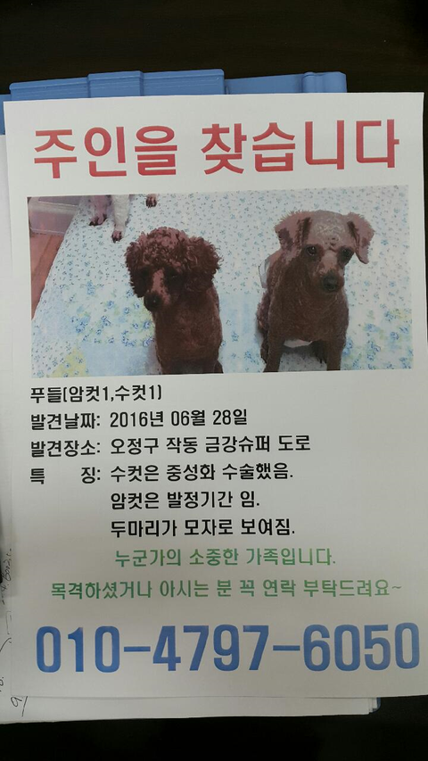 동물병원 마다 찾아가서 전단지도 돌리구 강아지 몸에 칩이 있는지 없는지도 찾아 볼 예정이구요
