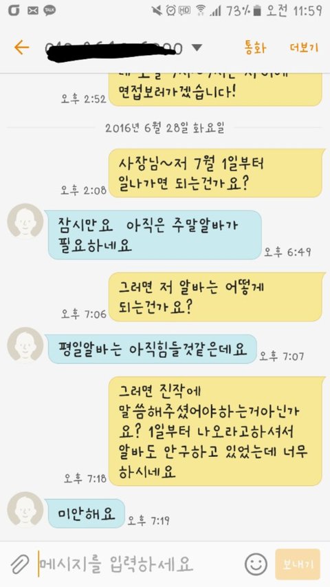 그러면 진작에 말씀해주셨어야 하는거아닌가요?1일부터 나오라고 하셔서 알바도 안구하고있었는데 너무 하시네요