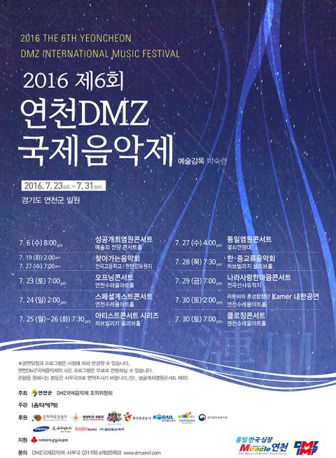 6년째 진행하고 있는 연천 DMZ 국제음악제라고 함! DMZ 그.. 머 한계선 이런거 아닝가? ㅎㅎ 하긴 연천이 좀 끄트머리긴 하죠 ㅋㅋㅋㅋ