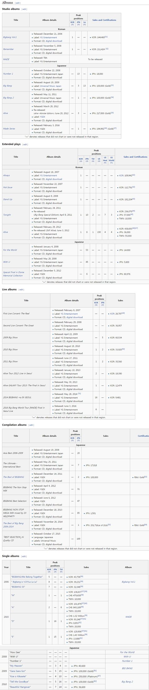 7위 빅뱅(3,575,997장)